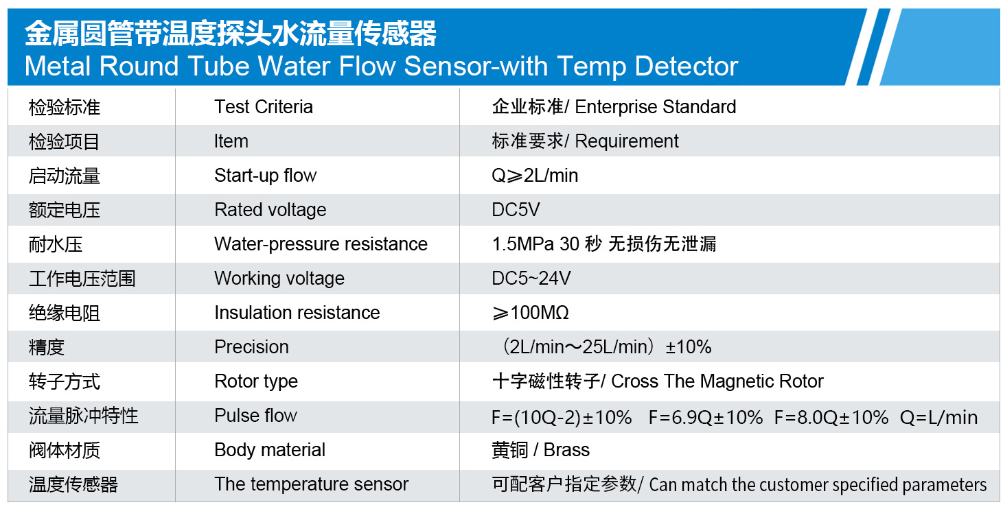 金属圆管带温度探头水流量传感器